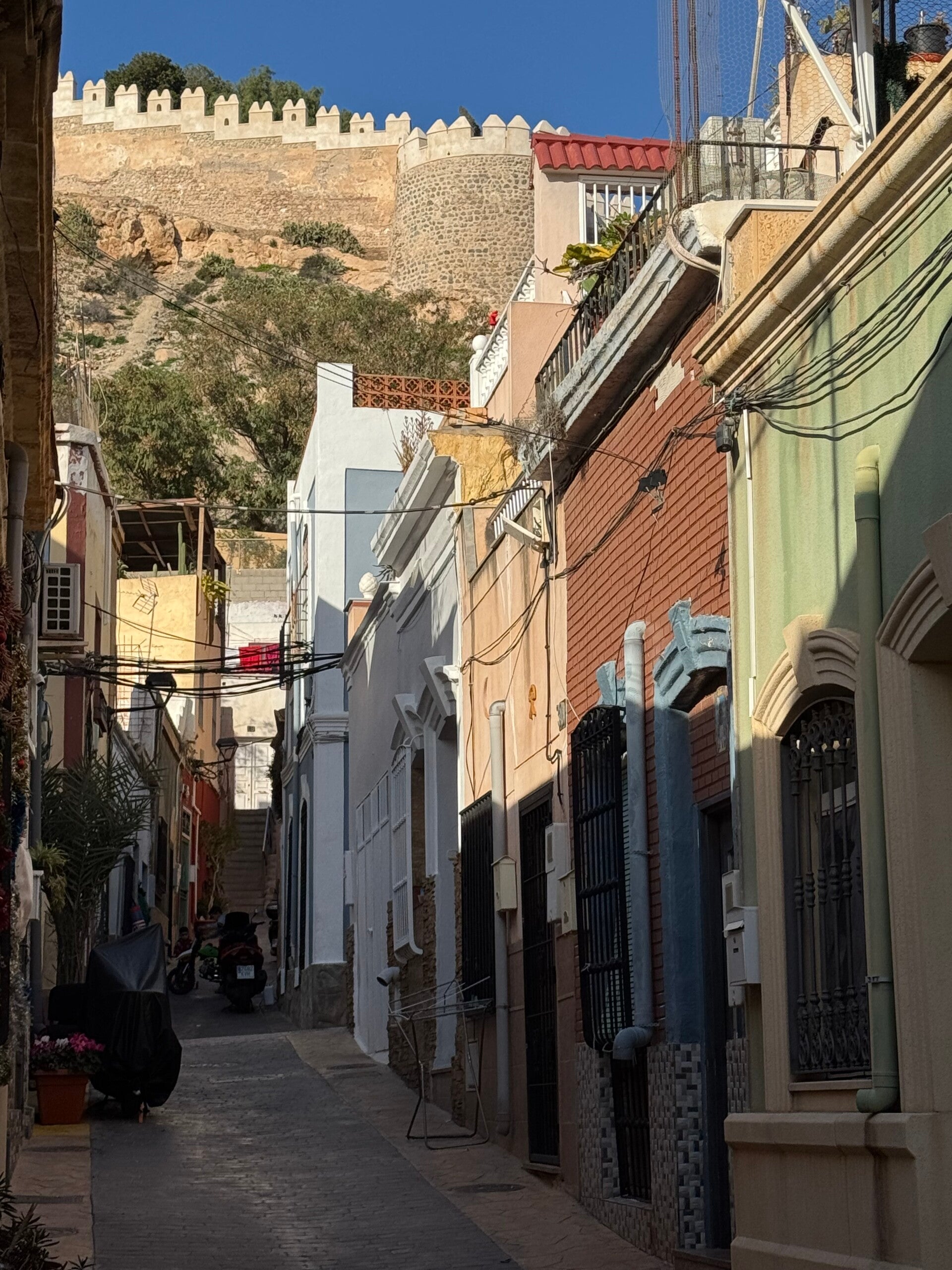We verwachtten niet veel van de stad Almería zelf en worden - misschien wel daardoor - positief verrast. De havenstad heeft in het verleden een aantal rampen overleefd (aanvallen, aardbeving, burgeroorlog) en we zien dat er ook nu nog wordt gewerkt om de stad op te knappen. Vooral het gerenoveerde Alcazaba maakt indruk en biedt een weids uitzicht over de stad en omgeving. Door de kleurrijke straatjes van de wijk La Chanca, over de kade en de moderne Rambla slenteren we terug naar de markthal, waar onze fietsen staan.